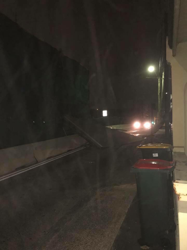 Iron roofing blown onto Campbell St, St Peters, from a WestCONnex home demolition site.