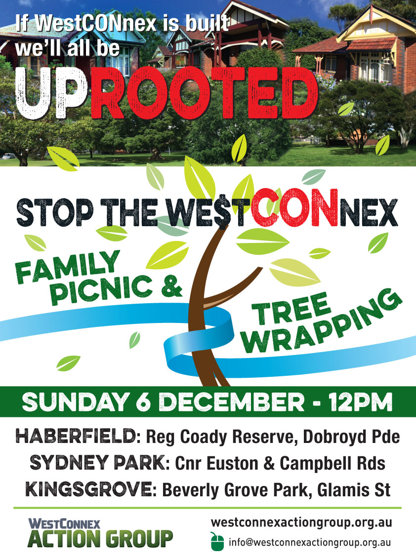 Come to our family picnic and tree wrapping to say NO to the destruction of our environment, parks, green spaces, homes, heritage, businesses, native animal habitat - and show Mike Baird our communities stand united to Stop WestCONnex.