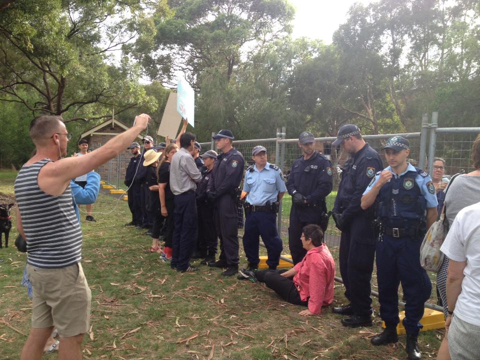 “We were told by a WestCONnex contractor that we were now standing on private land,” said Ms Lockie. “Police then threatened us with arrest for being on inclosed lands, even though we were on open public parkland.